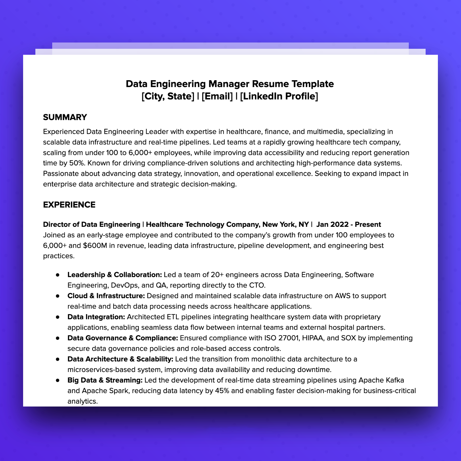 Resume Template: Data Engineer Manager
