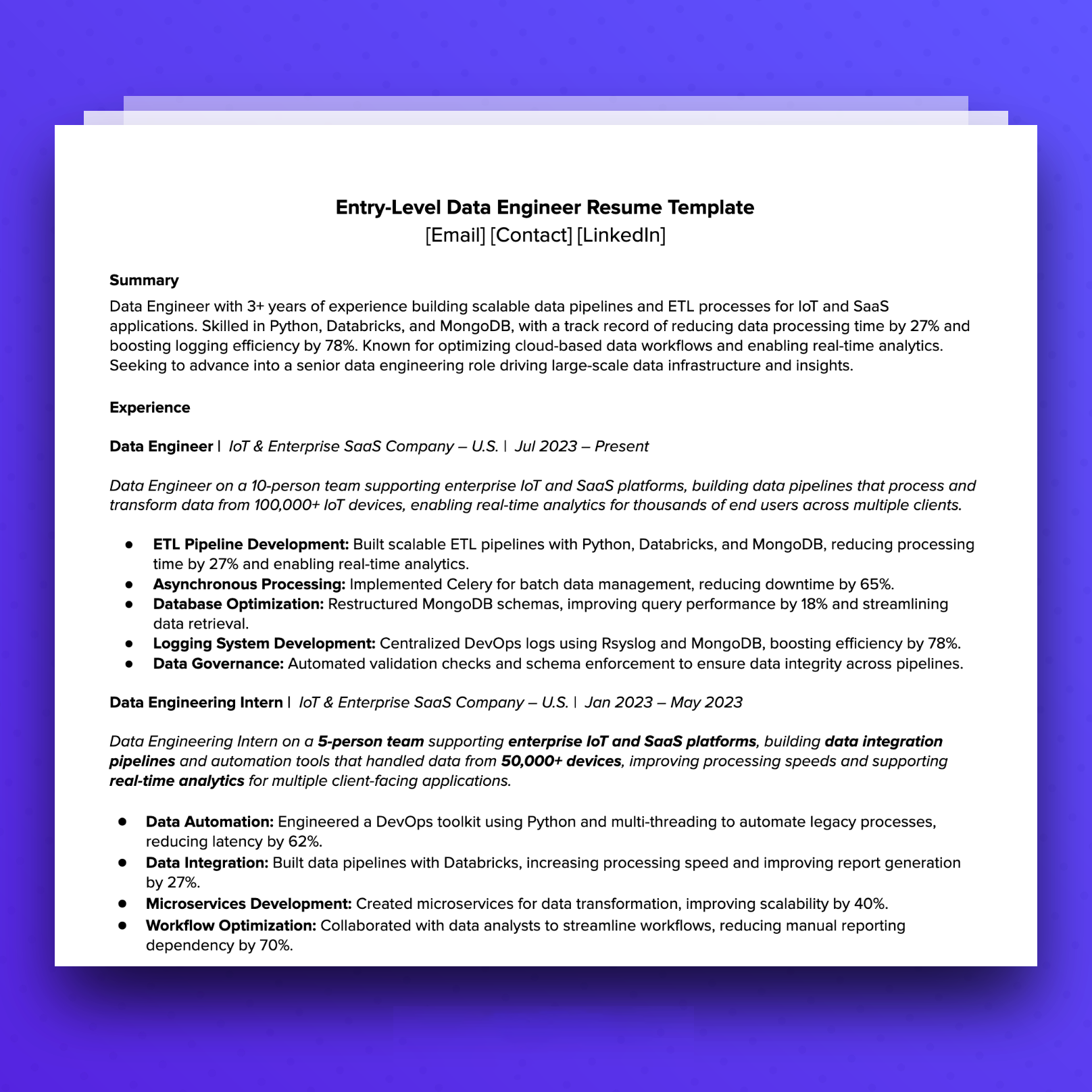 Below, we'll show you how to write the perfect data engineering resume to get seen by recruiters and hiring managers.