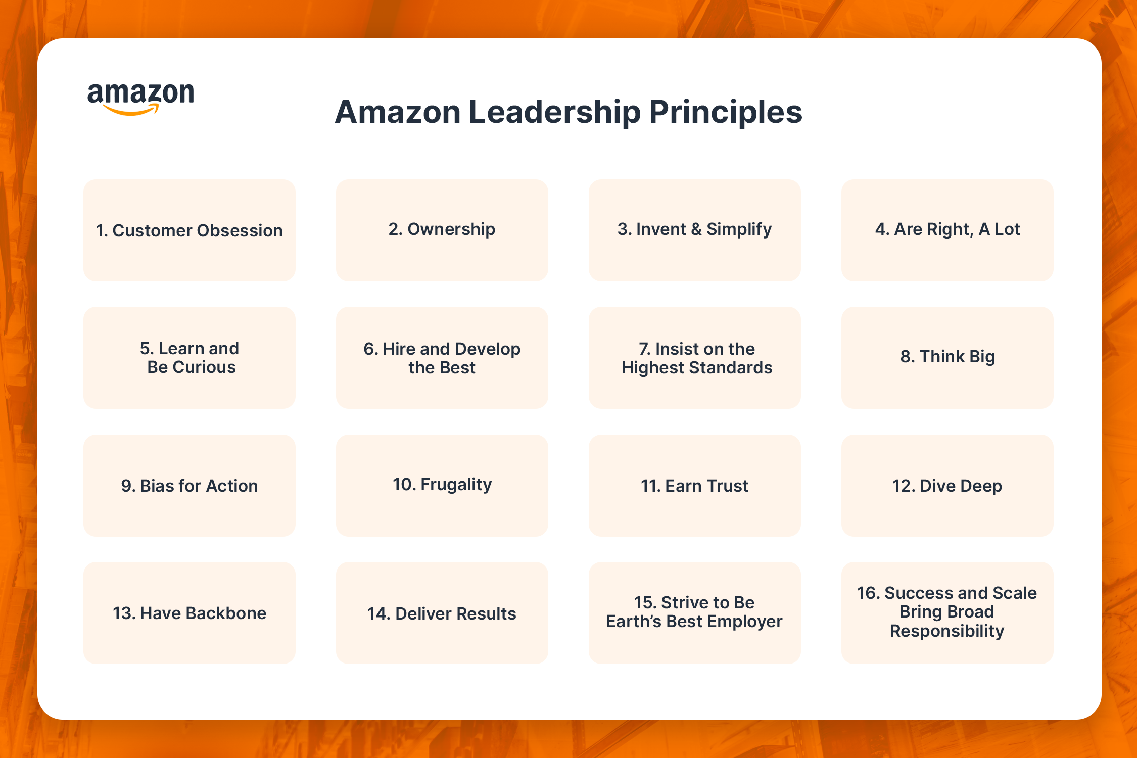 Amazon’s 16 leadership principles are: