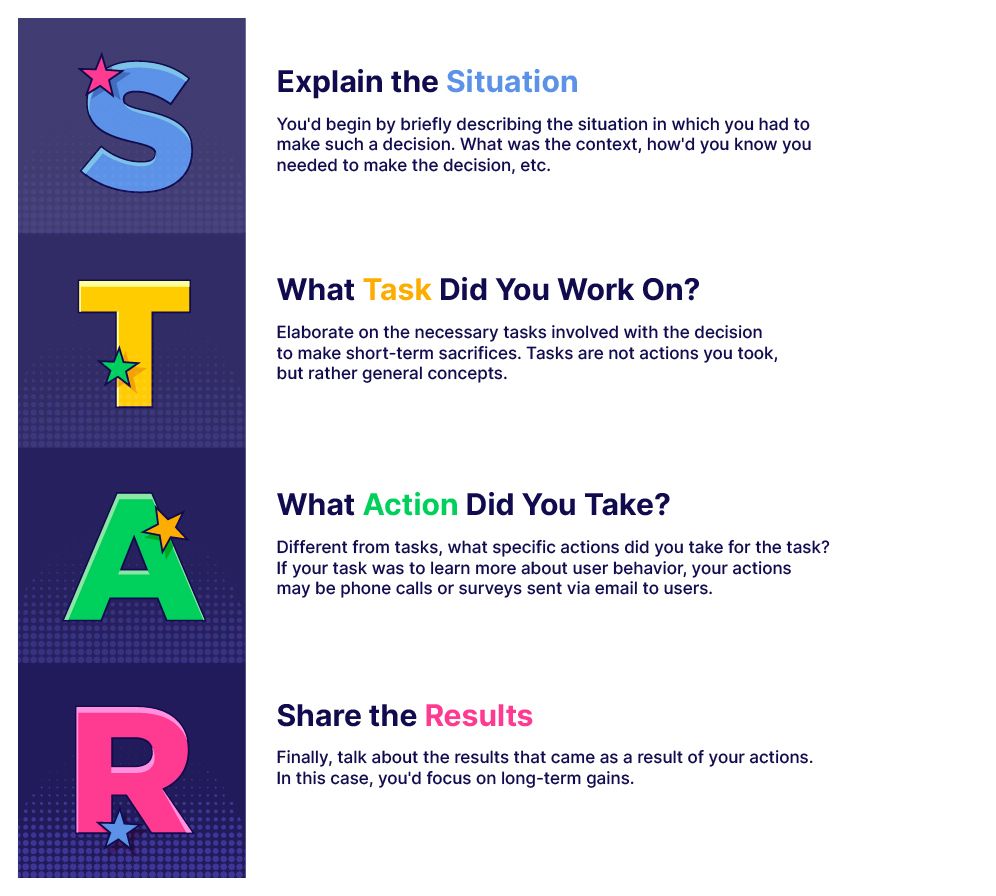 Use the STAR method to make the most out of your answer with no rambling or confusing answers.