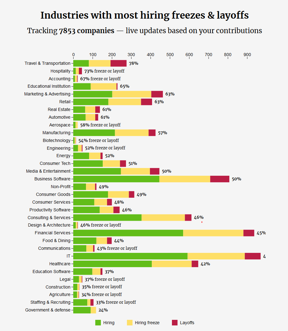 At the time of publishing, Candor’s live COVID-19 hiring/firing tracker looked like this: